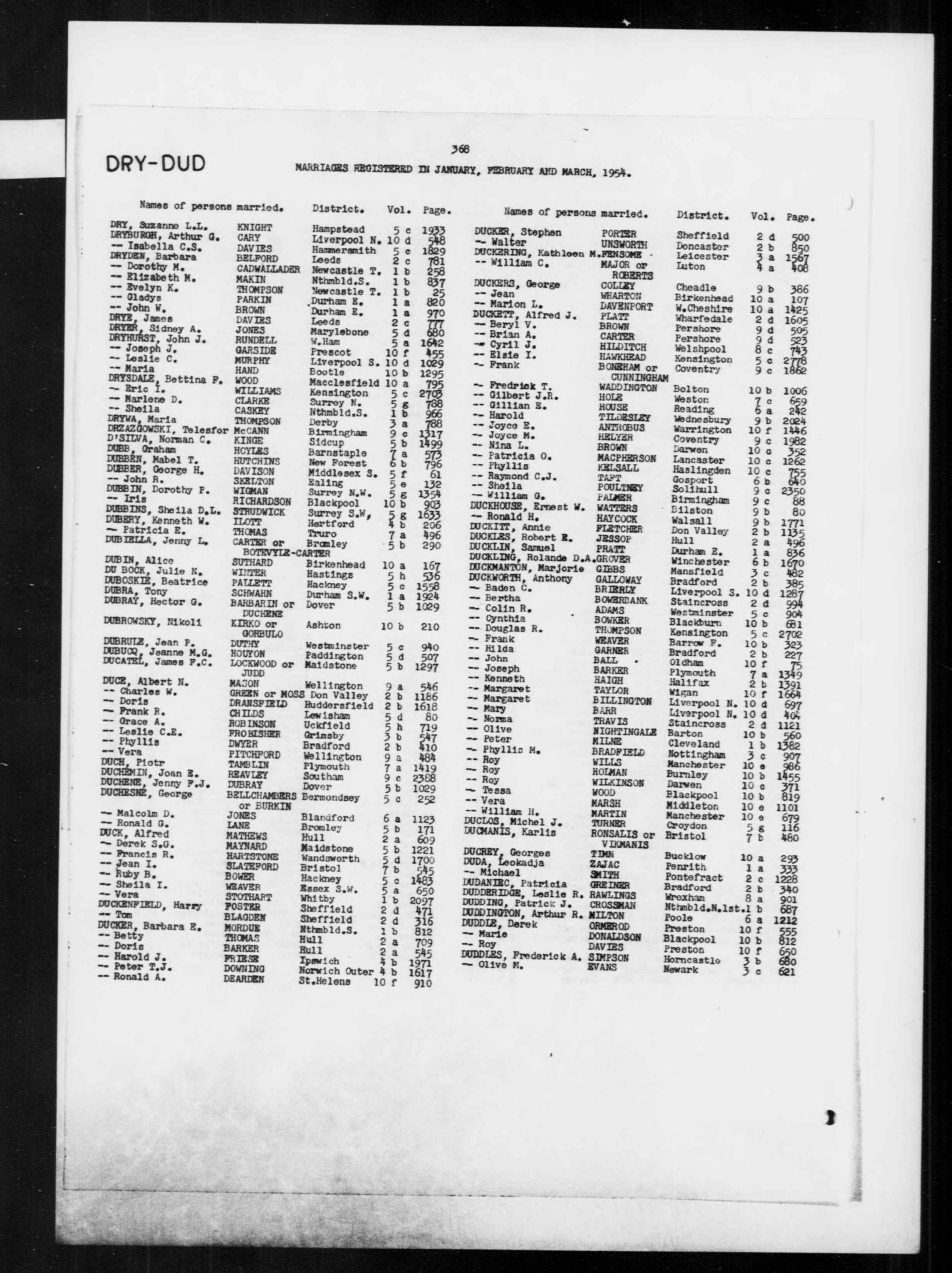 England & Wales, Civil Registration Marriage Index, 1916-2005