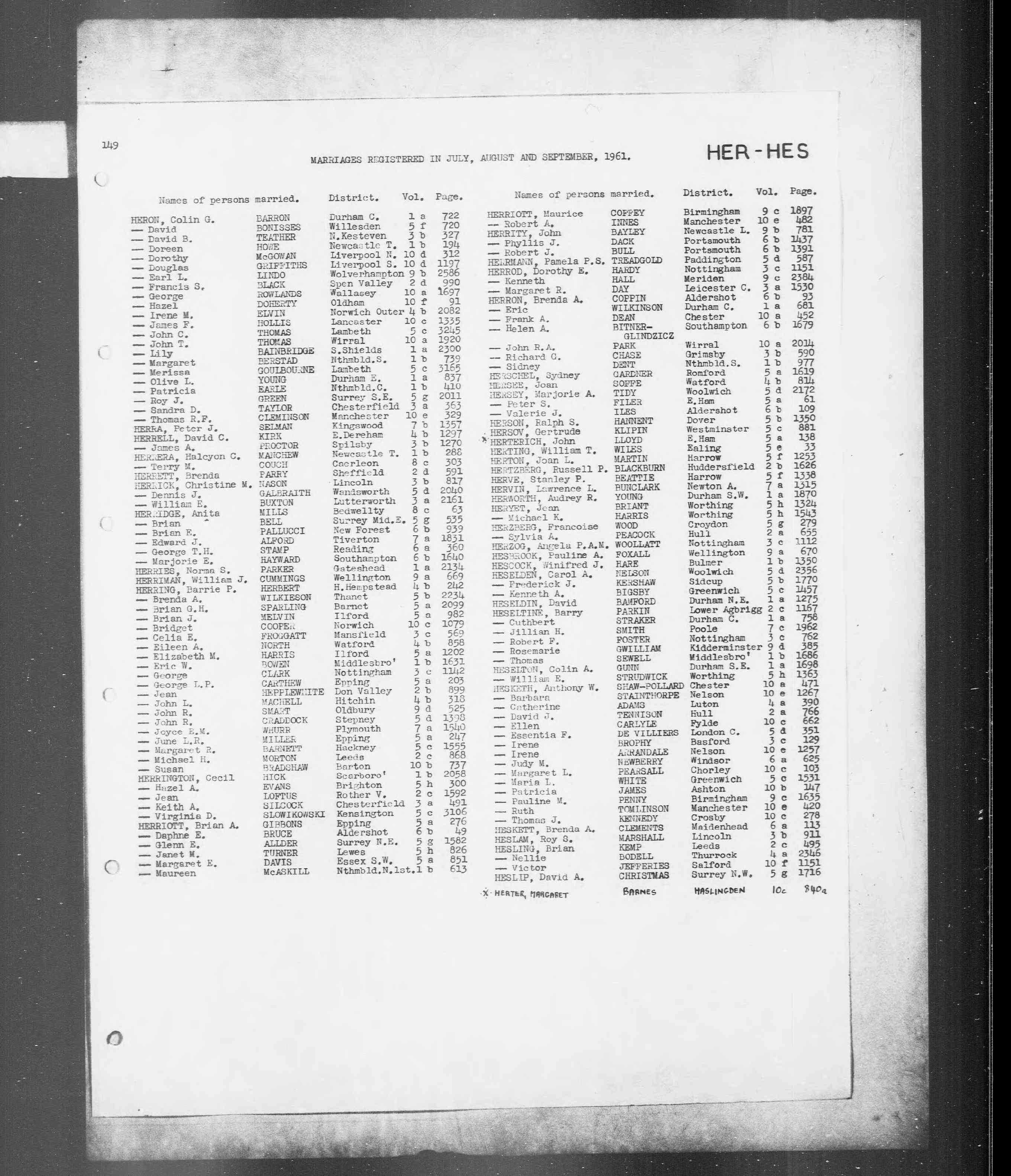 England & Wales, Civil Registration Marriage Index, 1916-2005