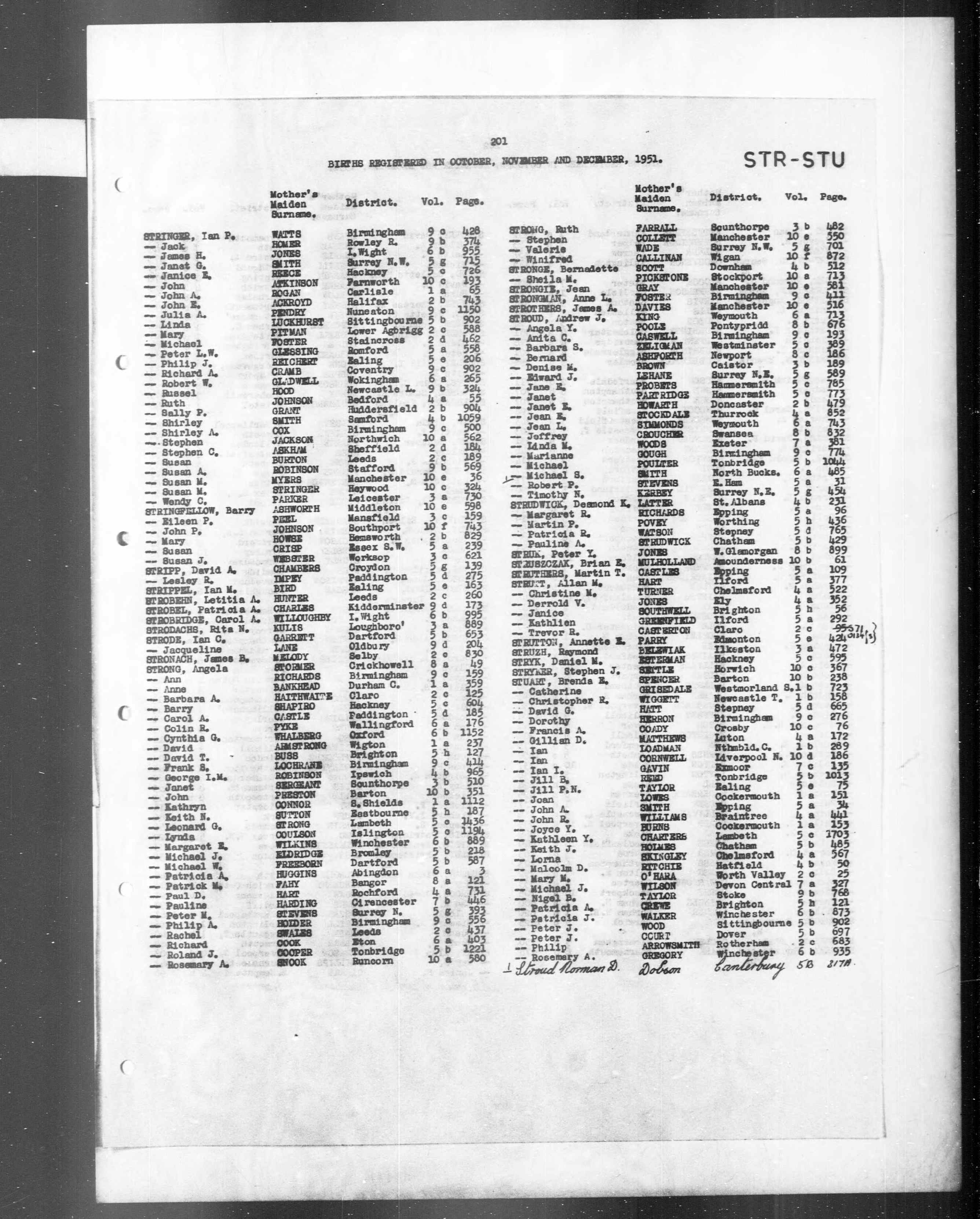 England & Wales, Civil Registration Birth Index, 1916-2005