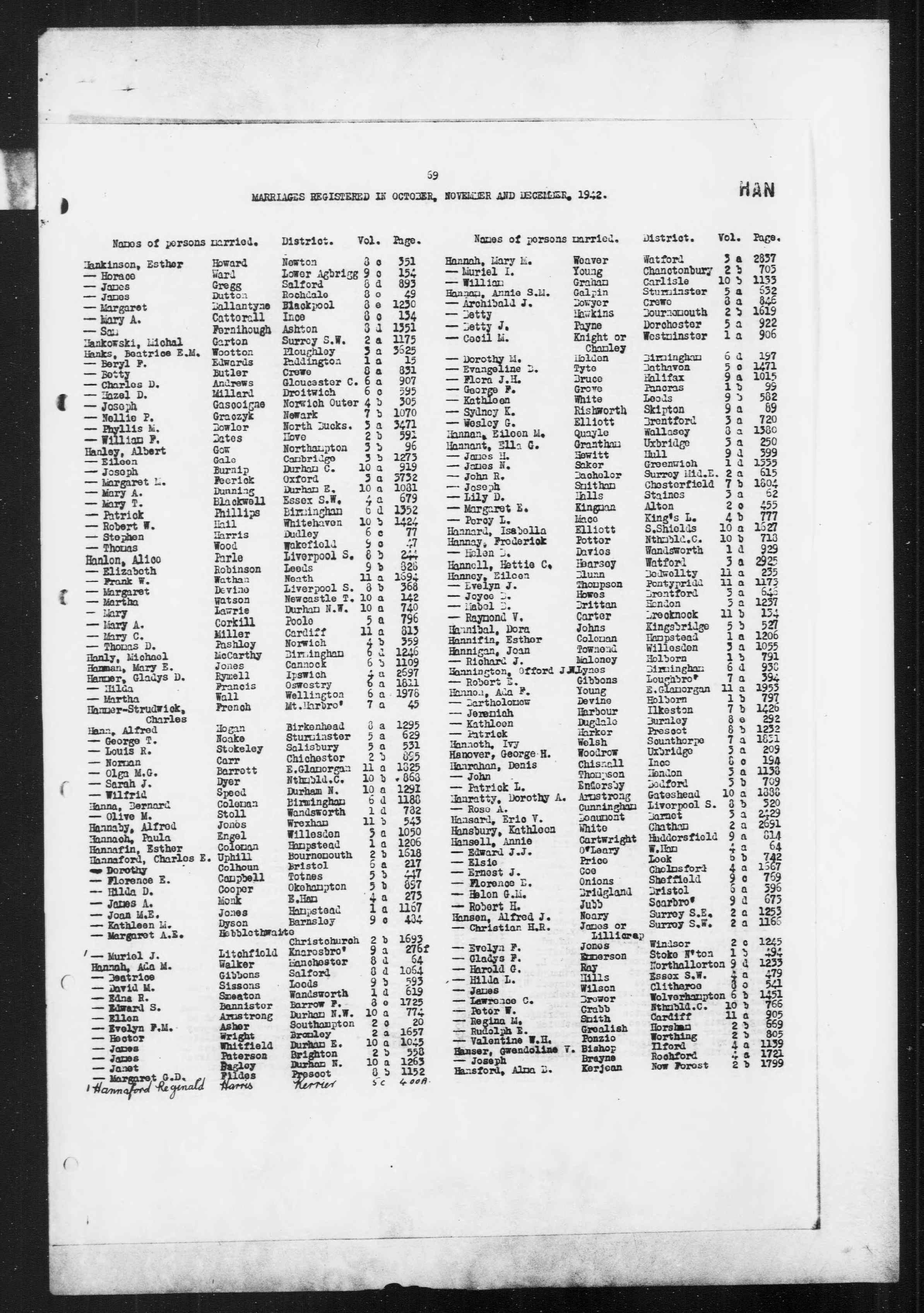 England & Wales, Civil Registration Marriage Index, 1916-2005