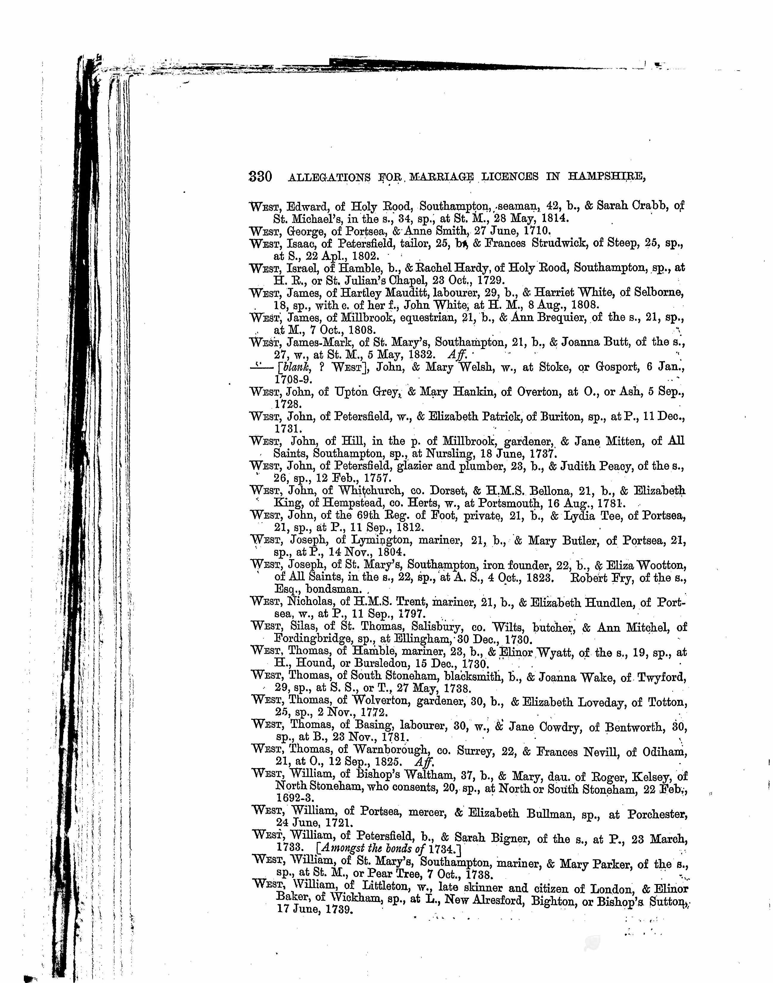 Hampshire, England, Allegations for Marriage Licences, 1689-1837