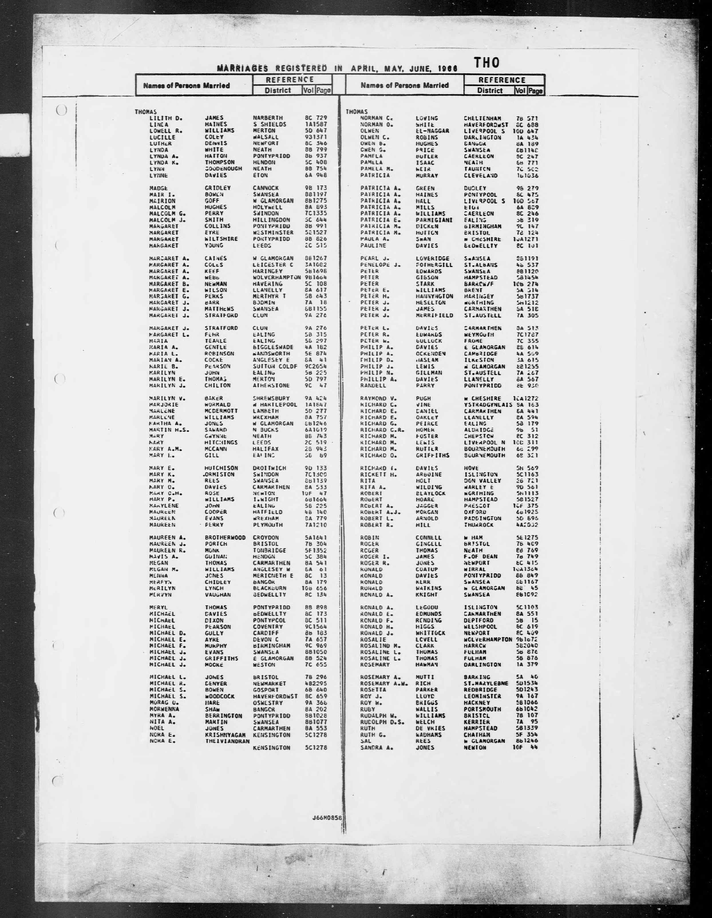 England & Wales, Civil Registration Marriage Index, 1916-2005