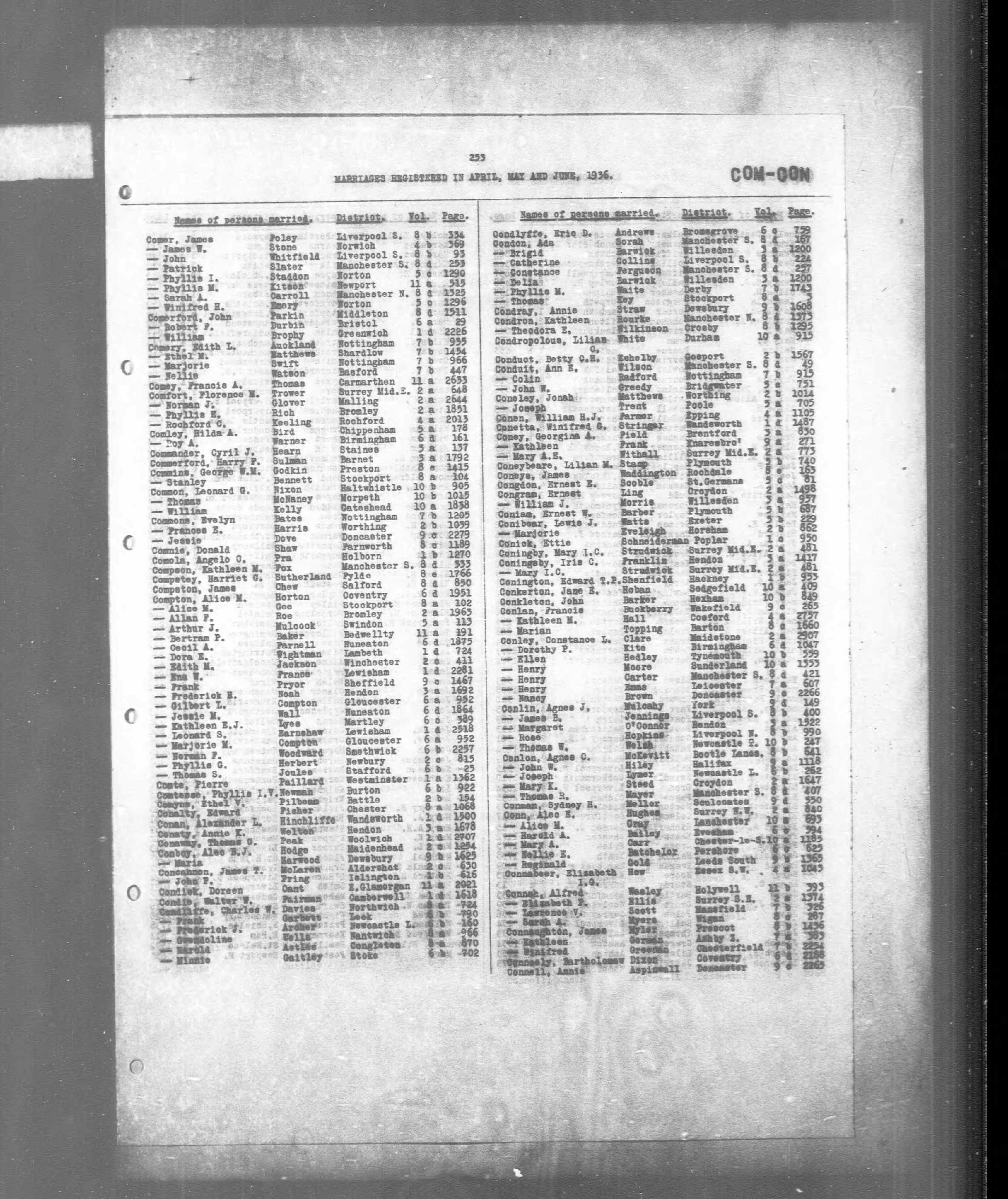 England & Wales, Civil Registration Marriage Index, 1916-2005