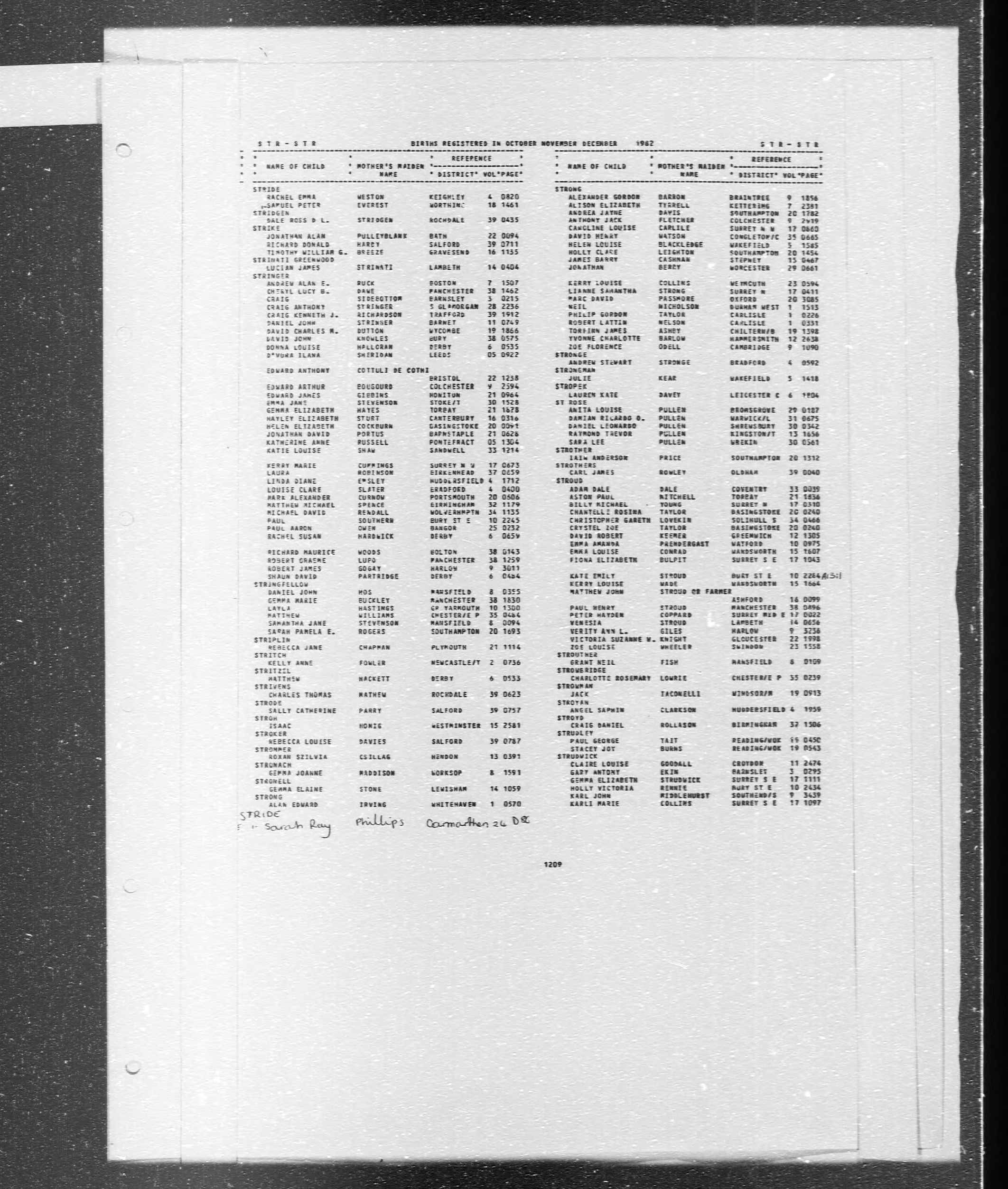 England & Wales, Civil Registration Birth Index, 1916-2005