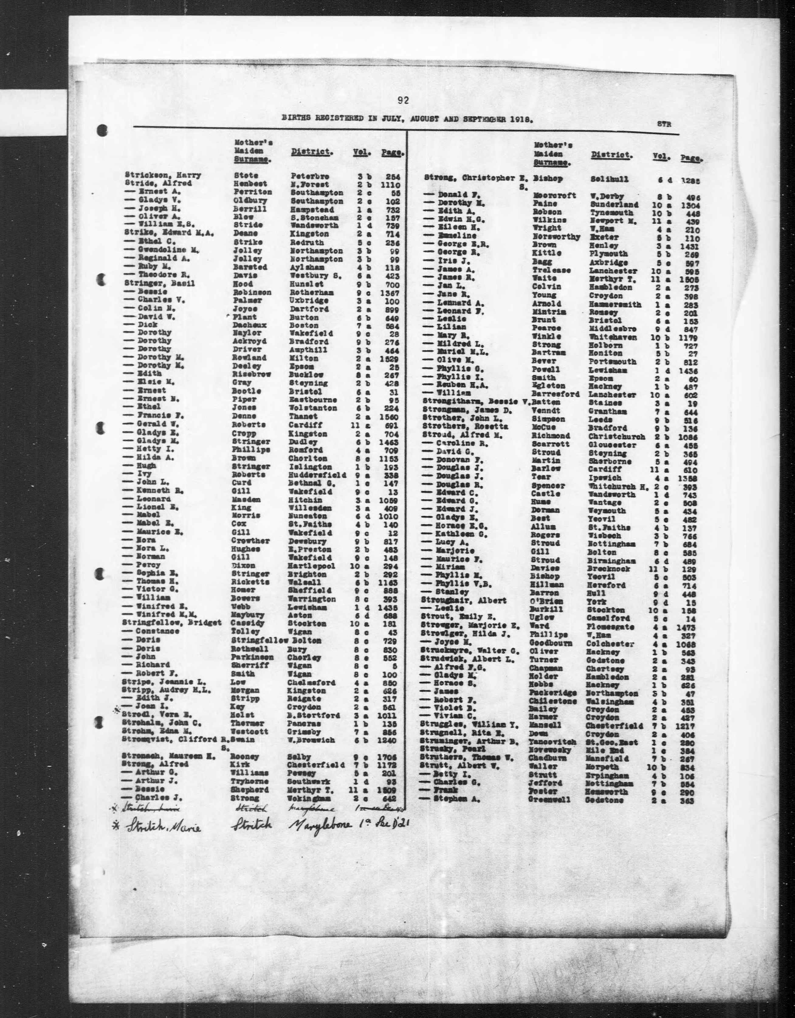 England & Wales, Civil Registration Birth Index, 1916-2005