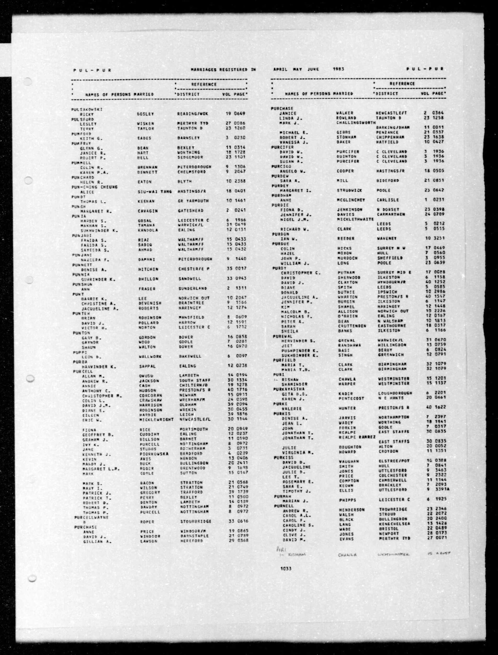 England & Wales, Civil Registration Marriage Index, 1916-2005