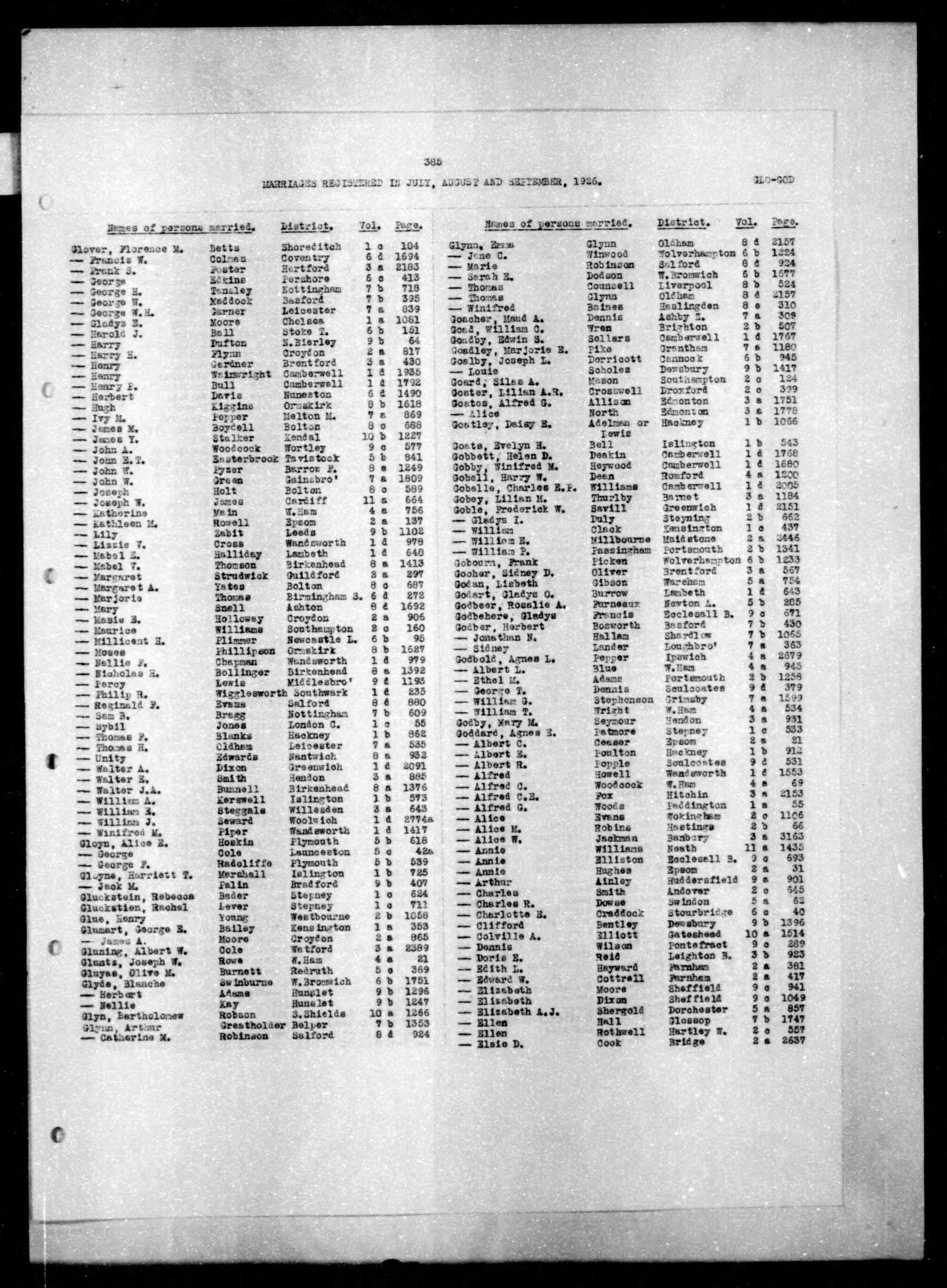 England & Wales, Civil Registration Marriage Index, 1916-2005