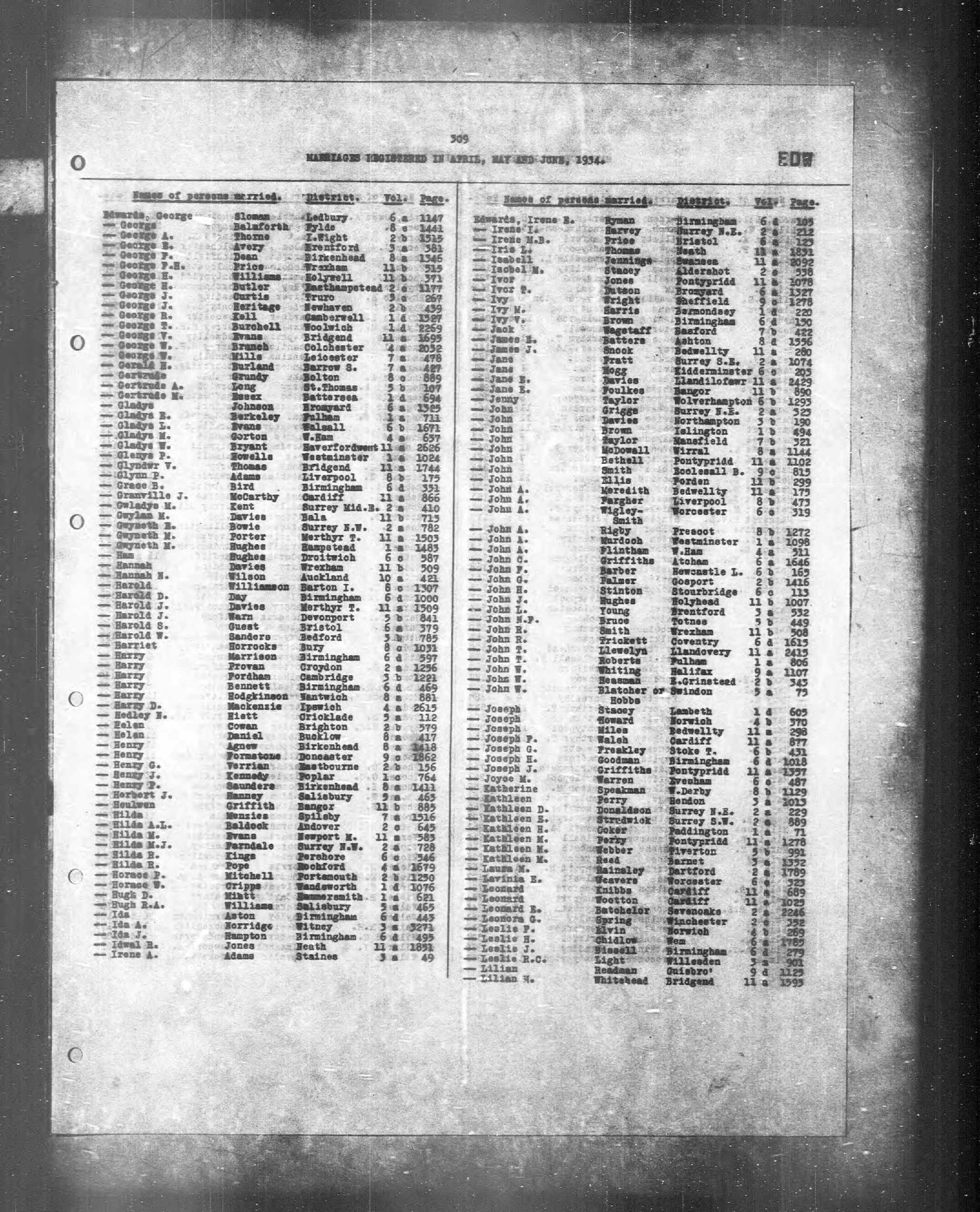England & Wales, Civil Registration Marriage Index, 1916-2005