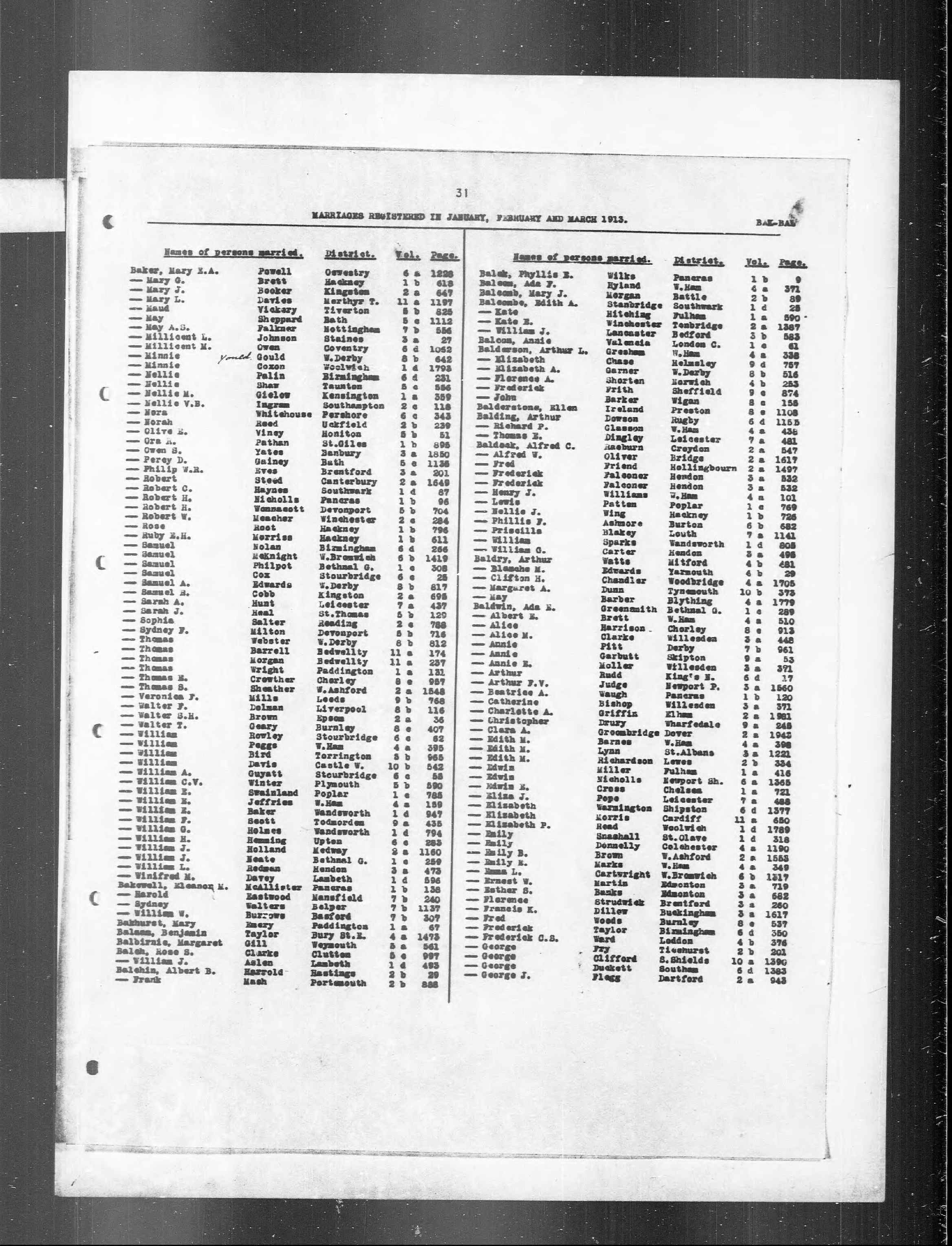 England & Wales, Civil Registration Marriage Index, 1837-1915