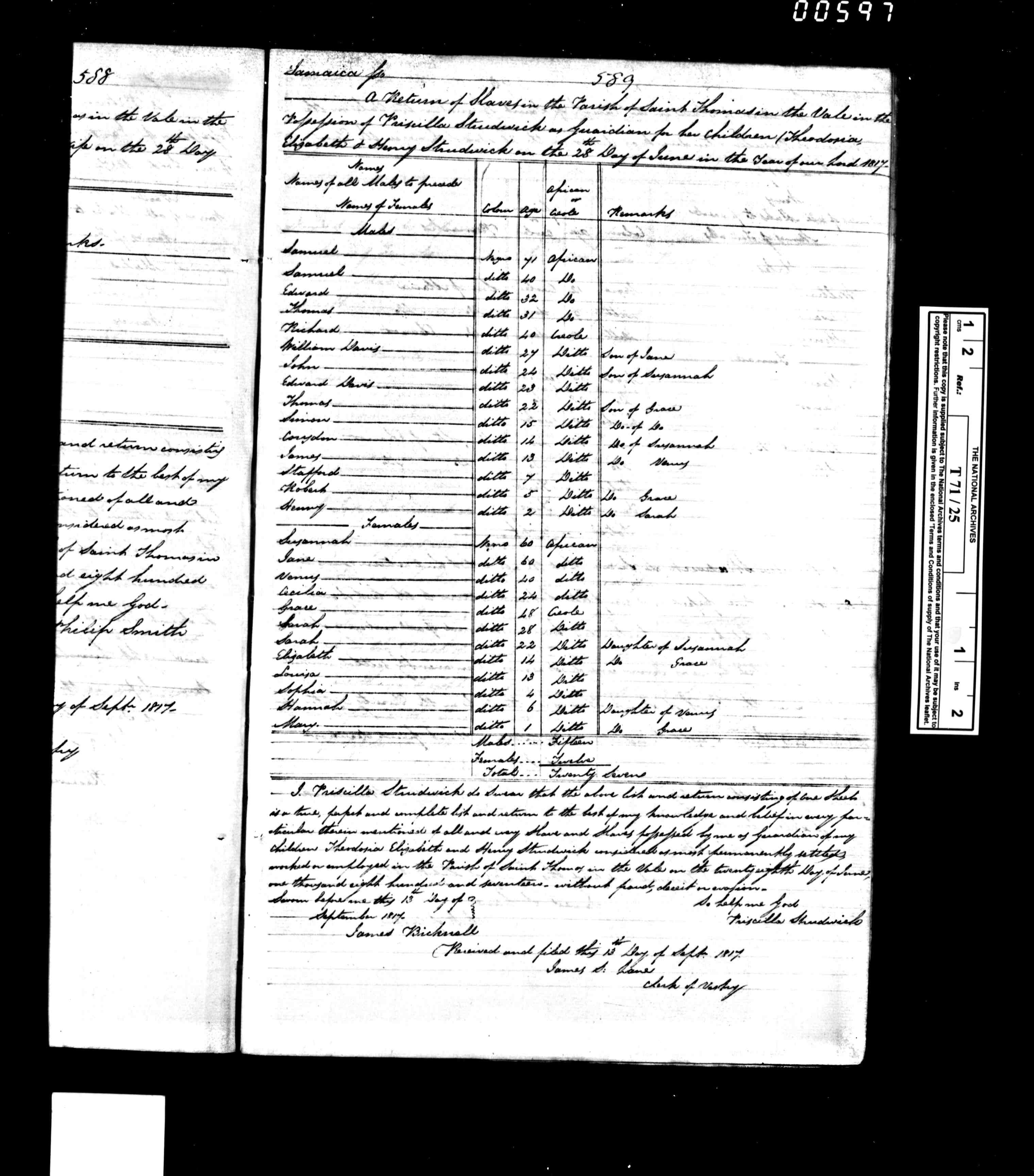 Slave return listing the held by Priscilla Slatford as Guardian of Elizabeth, Henry and Theodesia